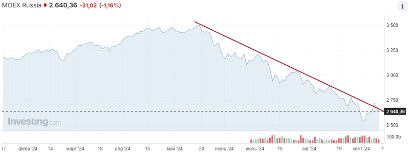 Индекс Мосбиржи вернулся в границы нисходящего тренда
