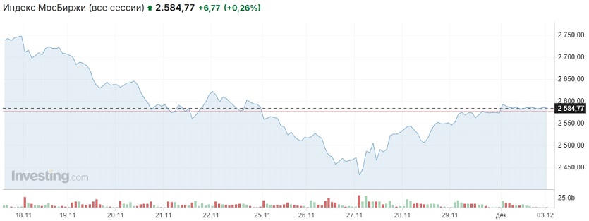 Сегодня ожидаем нейтрального открытия рынка и движения индекса Мосбиржи вблизи 2600 пунктов, преимущественно ниже нее, с попытками повторно протестировать указанную отметку. На стороне продавцов по-прежнему будут выступать ожидания ужесточения монетарной политики ЦБ РФ на декабрьском заседании, предстоящие изменения в налогообложении нефтегазового сектора, геополитический и санкционный факторы.
