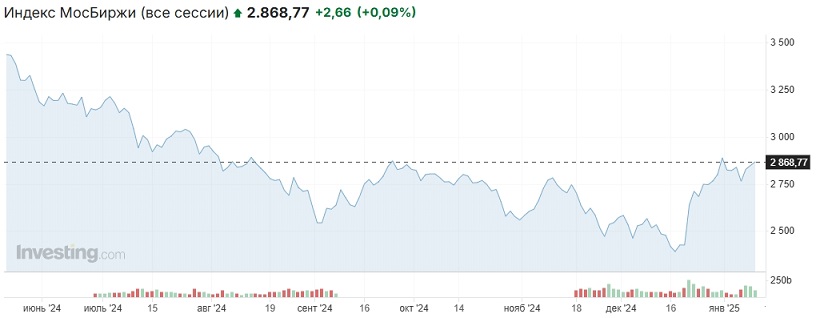 Многие эксперты ставят на рост российского рынка в 2025 году, надеясь на ослабление геополитической напряженности и санкционного режима после прихода к власти в США Трампа, а также на смягчение монетарной политики ЦБ РФ. Мы не разделяем этих настроений и полагаем, что индекс Мосбиржи в наступившем году может не только не подрасти, но даже и снизиться.