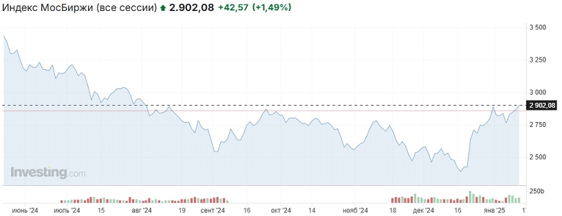 Индекс Мосбиржи пробил вверх рубеж 2900 пунктов на данных по инфляции