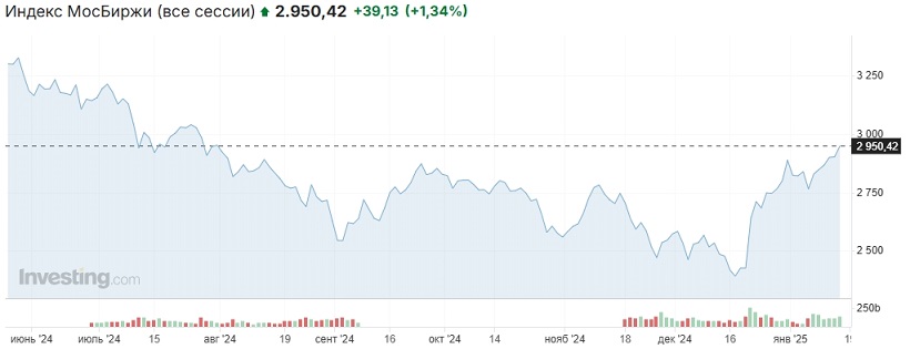 За минувшую неделю индекс Мосбиржи вырос с 2829,76 до 2950,42 пункта (+4,26%) и переписал полугодовой максимум. Считается, что этот рост, равно как и предновогоднее ралли, вызван главным образом ожиданиями предстоящего ослабления геополитической напряженности и санкционного режима после прихода к власти в США Трампа, а также смягчения монетарной политики Банком России в наступившем году,