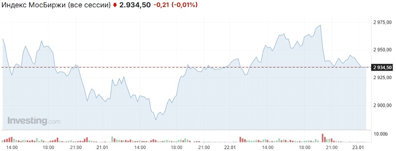 Вечернее снижение российского рынка проходило на данных по инфляции от Росстата: за неделю с 14 по 20 января показатель снизился до 0,25% с 0,67% в предыдущий 13-дневный период, годовая же инфляция (за предшествующих 12 месяцев) выросла до 10,04% относительно 9,87% неделей ранее. В конце декабря ЦБ РФ в резюме по итогам последнего заседания минувшего года спрогнозировал, что годовая инфляция в начале 2025 года продолжит расти и может достигнуть своего пика в апреле.