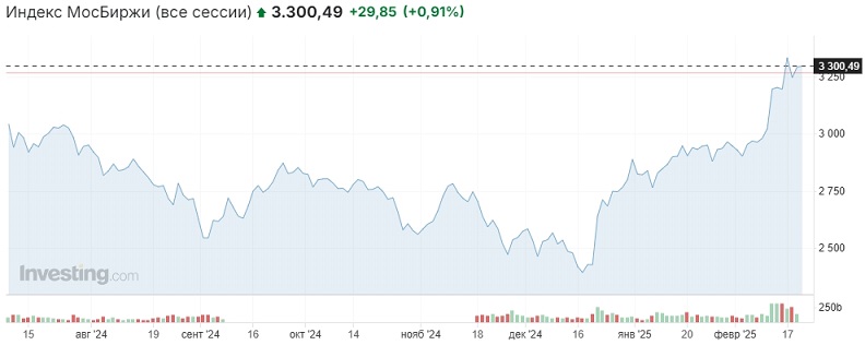 В среду российский фондовый рынок вернулся к росту, индекс Мосбиржи закрыл день на отметке 3270,64 пункта (+0,36% к закрытию дня понедельника). На вечерке индикатор прибавил около 30 пунктов и закрылся чуть ниже 3300 пунктов.