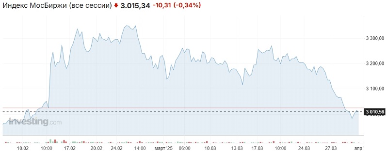 (дополнение от 31.03.2025): Утром понедельника в АТР ключевые биржи падают, фьючи на индексы США также снижаются, июньский фьюч на Brent дешевеет и торгуется в районе $72,5.