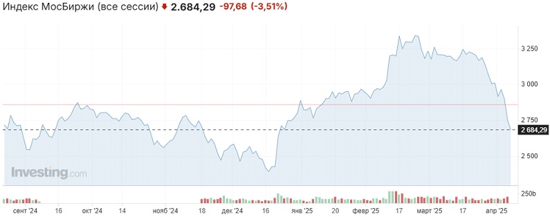 На минувшей неделе индекс Мосбиржи снизился с 3006,83 до 2752,58 пункта (-8,46%) и впервые за свою историю завершил падением 13-ю сессию основных торгов подряд, а все достижения текущего года были распроданы. Геополититика из бычьего фактора превратилась в медвежий, а развязанная Трампом тарифная война отправила рынки, в том числе и российский, в нокдаун.