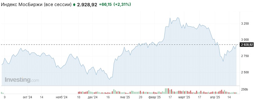 Индекс Мосбиржи пробил вверх рубеж 2900 пунктов