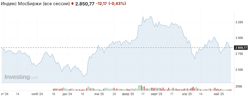 Геополитика продолжает рулить российским рынком. Зеленский оставил Умерова главой украинской делегации на переговорах с РФ в Стамбуле, но понизил статус остальных участников до уровня российских представителей. Вчера переговоры не начались и были перенесены на сегодня. Мы полагаем, что переговоры ничем не окончатся из-за несовместимости позиций РФ и Украины по условиям не только долгосрочного мира, но даже 30-дневного перемирия. Возможно, будет соглашение по обмену военнопленными. Трамп заявил, что для урегулирования необходима его встреча с Путиным.
