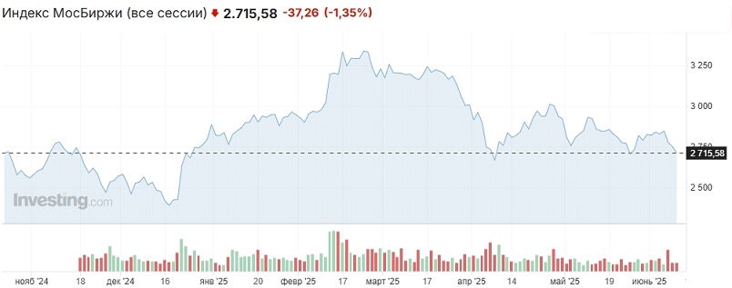 На стороне продавцов играли активизировавшийся санкционный фактор и существенно укрепившийся рубль. В ЕС разрабатывается 18-й пакет санкций, который может включать в себя новые ограничения для банковского и нефтегазового секторов, в том числе снижение потолка цен на российскую нефть с $60 до $45 за баррель. На стороне покупателей выступала дорожавшая нефть, правда ближе к ночи нефтяные котировки откатились вниз.