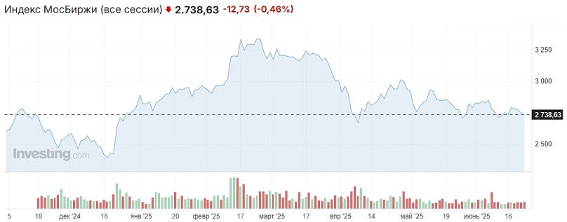 На геополитическом направлении события и заявления официальных лиц создавали в целом смешанный фон. Венгрия и Словакия заблокировали принятие 18-го пакета санкций ЕС. На Ближнем Востоке замаячило перемирие, что привело к обрушению нефтяных котировок. Песков сообщил, что на этой неделе появятся "прикидки" по дате проведения третьего раунда переговоров с Украиной. В свою очередь Ушаков заявил, что сроки и место проведения встречи представителей РФ и США по нормализации отношений пока не определены.