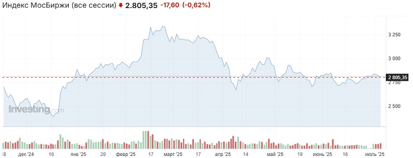 Индекс Мосбиржи приступил к тестированию поддержки 2800 пунктов
