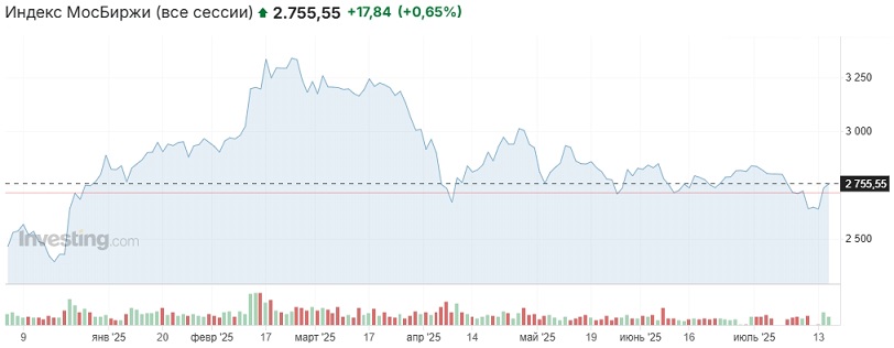 Характер торгов вторника (резкий рост на открытии и выход на горизонтальное плато в середине дня) говорит об исчерпании потенциала роста. Совокупность факторов, влияющих на динамику российского рынка, создаёт в целом слабо медвежий фон. Наиболее актуальным сценарием торгов среды видим консолидацию индекса Мосбиржи в районе 2750 пунктов с попытками умеренного снижения.