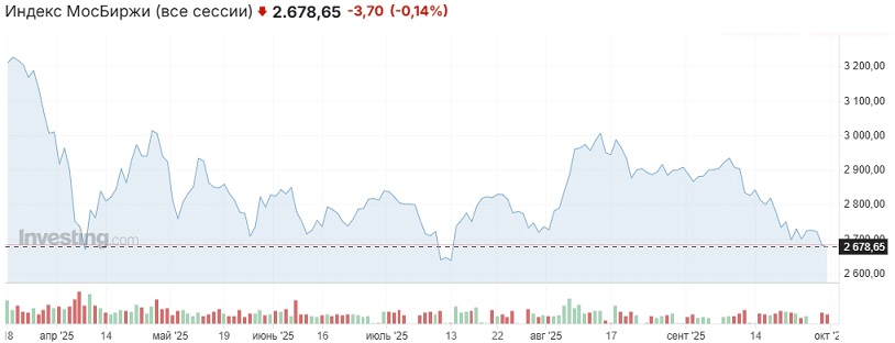 Совокупность факторов, оказывающих влияние на динамику российского рынка, создавала в целом умеренно медвежий фон. На геополитическом направлении можно отметить заявления Трампа во время его выступления перед американскими генералами, в которых он в очередной раз выразил разочарование Путиным, снова назвал РФ бумажным тигром и "проехался" по Медведеву без указания фамилии, назвав последнего "тупым человеком, который работает на Путина". Келлог заявил, что РФ не побеждает на украинском направлении. Эрдоган заявил о важности диверсификации Турцией поставок энергии, видимо, с учётом призывов Трампа к Турции перестать покупать российские углеводороды. Фон дер Ляйен заявила, что ЕС планирует включить запрет на поставки российского СПГ в 19-й пакет санкций против РФ. Также на стороне продавцов играли сырьевой и валютный фактор: нефть дешевела, а рубль укреплялся.