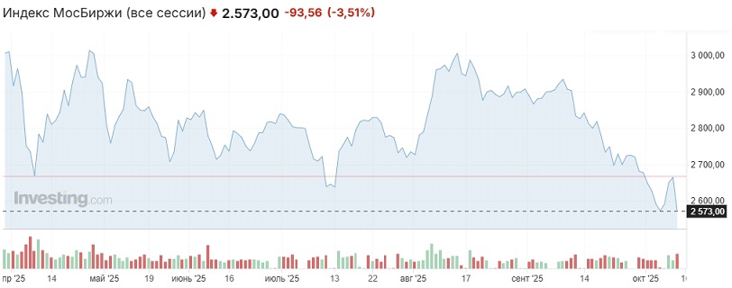 Ключевые факторы в совокупности формировали вчера медвежий фон. С геополитического направления поступали дурные вести. Газета Mundo со ссылкой на источники сообщила, что Трамп пока рассматривает поставки Украине ракет Томагавк лишь в очень ограниченном количестве в рамках давления на РФ, однако, если стратегия "принудить Россию к переговорам" не удастся, поставки могут увеличиться. В свою очередь зам Лаврова Рябков призвал "американское руководство и американских военных трезво, здраво, ответственно подойти ко всей этой ситуации" (возможной передаче Украине ракет Томагавк) и отметил, что "мощный импульс Анкориджа в пользу договоренностей... усилиями сторонников войны до последнего украинца, прежде всего среди европейцев, оказался в значительной мере исчерпан".