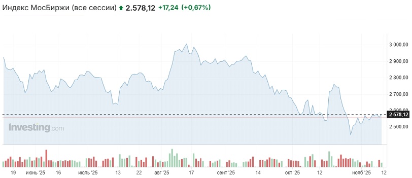 Во вторник индекс Мосбиржи переместился в верхнюю часть диапазона 2500-2600 пунктов