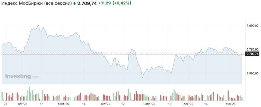 Российский рынок продолжил консолидироваться в районе 2700 пунктов по индексу Мосбиржи