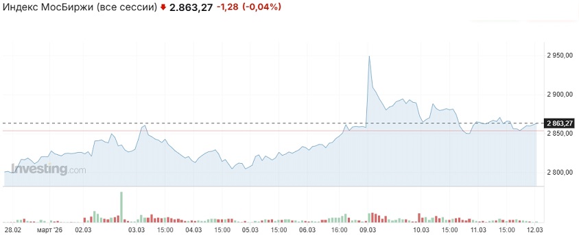 Наши предположения отнсительно продолжения консолидации российского рынка на торгах среды в целом подтвердились. Амплитуда колебаний индекса Мосбиржи значительно сузилась и уложилась в рамки диапазона 2852-2874 пункта. Основная сессия была закрыта на отметке 2854,05 пункта (+0,01% к закрытию основной сессии вторника), вечёрка — на отметке 2863,27 пункта (-0,04% к закрытию вечёрки вторника).