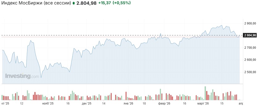 (дополнение от 29.03.202): На торгах выходного дня в воскресенье российский рынок вернулся выше 2800 пунктов по индексу Мосбиржи (2804,98 пунктов, +0,55% к закрытию основных торгов пятницы), однако пока данный скачок имеет смысл рассматривать, как отскок.