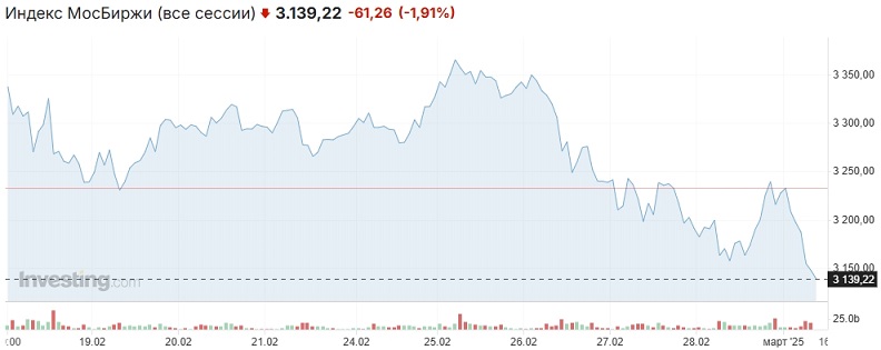 На минувшей неделе во вторник индекс Мосбиржи переписал 9-месячный максимум в районе 3371 пункта, в пятницу опускался к 3150 пунктам, а закрыл неделю на отметке 3234,53 пункта, показав рост на фоне скандальной встречи Зеленского с Трампом. В целом же индикатор на прошедшей неделе потерял около 2%, прежде всего на новостях с геополитического направления.