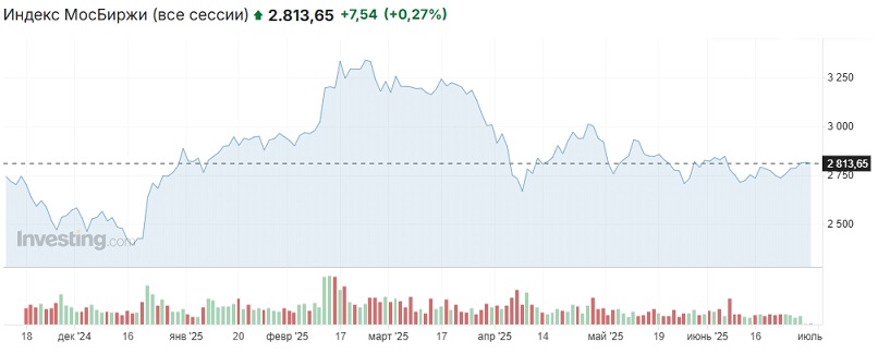 На дополнительных торгах в субботу индекс Мосбиржи закрылся на отметке 2818,5 пункта, +0,44% к закрытию основной сессии пятницы, а по отношению к закрытию вечёрки пятницы прибавил символические 0,05%. На воскресных торгах индекс Мосбиржи закрылся на отметке 2813,65 пункта. Грэм заявил, что Трамп считает: время для жёсткого удара по Кремлю настало. Речь идёт о новом пакете санкций против России, и обсуждение законопроекта в cенате начнётся уже в июле.