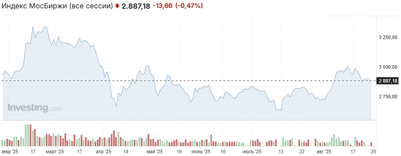 Сегодня вероятны новые попытки подойти к отметке 2900 пунктов и протестировать её в качестве ближайшего сопротивления. Сдерживать активность покупателей будет геополитическая неопределённость. Мы по-прежнему считаем миротворческую миссию Трампа невыполнимой из-за полной несовместимости позиций РФ и Украины по условиям урегулирования.