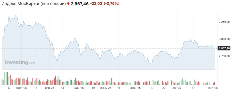 Ожидаем колебаний индекса Мосбиржи преимущественно в границах диапазона 2850-2880 пунктов