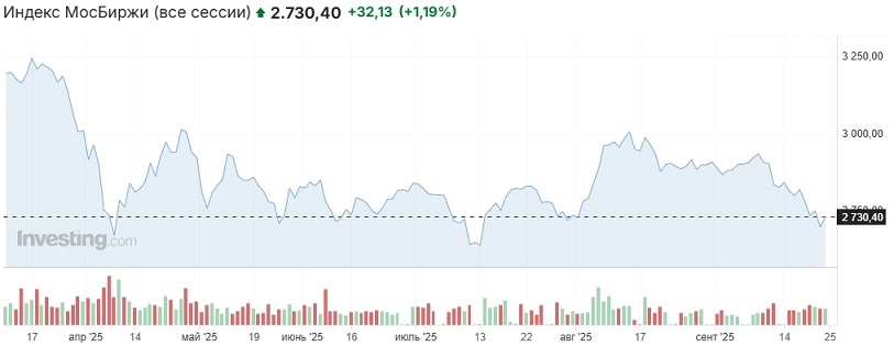 Ожидаем движений индекса Мосбиржи преимущественно в диапазоне 2700-2750 пунктов