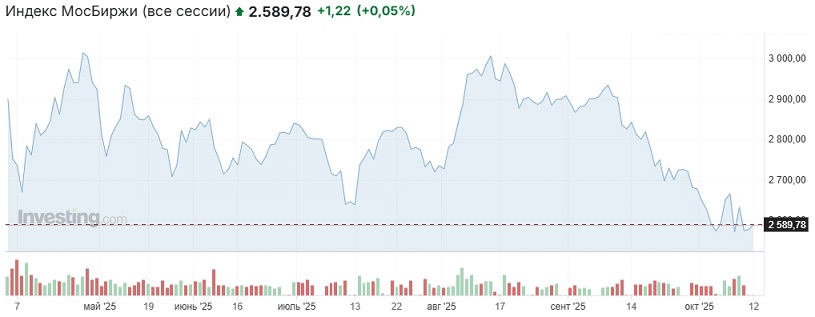 В целом фон в пятницу был умеренно медвежий. Трамп в соцсети Truth Social поблагодарил Путина за то, что тот похвалил его за миротворческие усилия и раскритиковал Нобелевский комитет, который не присудил премию мира Трампу :). Некоторые брокерские компании начали рассылать клиентам материалы, в которых говорится о подготовке к новой волне обмена заблокированными активами, что может привести к выбросу дополнительного массива бумаг на российский рынок. Трамп в соцсети Truth Social пригрозил ввести с 1 ноября "масштабные" пошлины на китайский импорт в ответ на введённый Пекином экспортный контроль в отношении технологий, связанных с редкоземельными элементами.