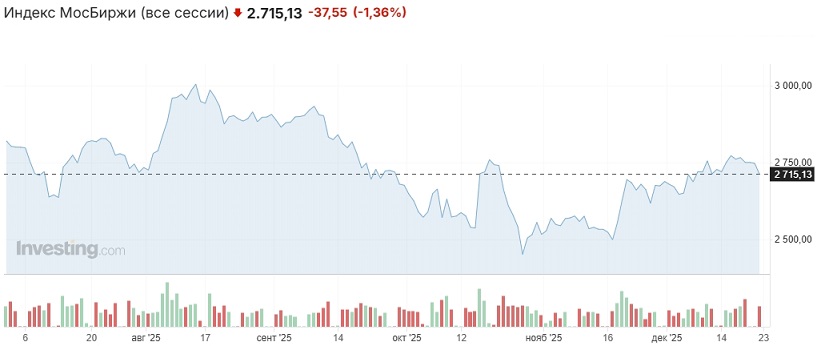 Одним из основных факторов влияния на динамику российского рынка по-прежнему остаётся геополитика, точнее геополитическая неопределённость. По данным западных СМИ, переговоры в Майами не привели к прогрессу в мирном урегулировании на украинском направлении. Сенатор-республиканец Линдси Грэм, внесённый в список террористов и экстремистов в РФ, заявил в воскресном интервью программе NBC, что "если Путин скажет "нет", нам нужно будет кардинально изменить правила игры, в том числе предоставить Украине ракеты Томагавк". МВФ и Euroclear приветствовали решение Совета Европы о предоставлении кредита Украине в размере 90 млрд евро под гарантии бюджета ЕС.