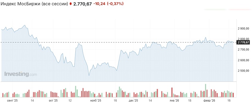 Ключевые биржи Европы и США в среду снизились на 0,3-0,9%, апрельский фьюч на Brent продолжил дорожать на фоне сообщений о подготовке США удара по Ирану и закрылся в районе $71,65 за баррель, рубль ослаб к доллару США (USD/RUB 76,6405, +0,64%), немного укрепился к евро (EUR/RUB 90,1669, -0,11%) и ослаб к юаню (CNY/RUB 11,0747, +0,66%).