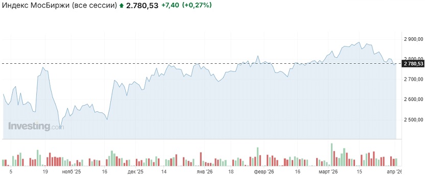 Вчера российский рынок немного вырос, индекс Мосбиржи прибавил 0,27% и закрыл вечёрку в районе 2780 пунктов. Продавцов поддерживали дешевевшая нефть и в некоторой степени валютный фактор. Данные Росстата по инфляции отразили её сохранение на относительно высоком уровне в абсолютных цифрах, что повышает вероятность приостановки смягчения ДКП Банком России на опорном заседании 24 апреля.