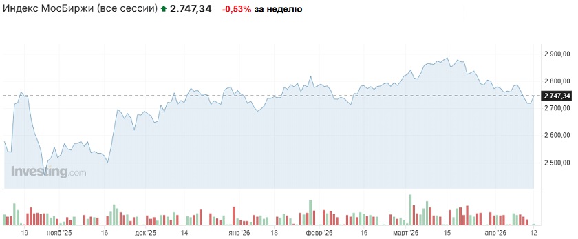 (дополнение от 12.01.2026); на торгах выходного дня в субботу российский рынок остался практически при своих, а в воскресенье отскочил от достигнутых в пятницу минимумов и закрылся на отметке 2747,34 пункта (+1% к закрытию вечёрки пятницы) после выхода новостей о безуспешных переговорах между Ираном и США в Исламабаде. По словам главного переговорщика от США Вэнса, Тегерану предложили "гибкие" условия, но тот отверг их, в частности по ядерной программе и Ормузскому проливу. Затем Трамп объявил о блокаде Ормузского пролива со стороны США, параллельно Вашингтон планирует разминирование пролива. Трамп также пригрозил жёстким ответом в случае любых атак. Многие игроки российского рынка восприняли эти сообщения, как веский повод для покупок бумаг нефтегазового сектора.