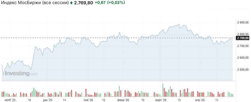 На торгах четверга движения российского рынка уложились в границы интервала 2763-2779 пунктов по индексу Мосбиржи. Основная сессия была закрыта на отметке 2771,46 пункта (+0,36% к закрытию основной сессии среды), вечёрка — на отметке 2769,8 пункта (+0,02% к закрытию вечёрки среды).