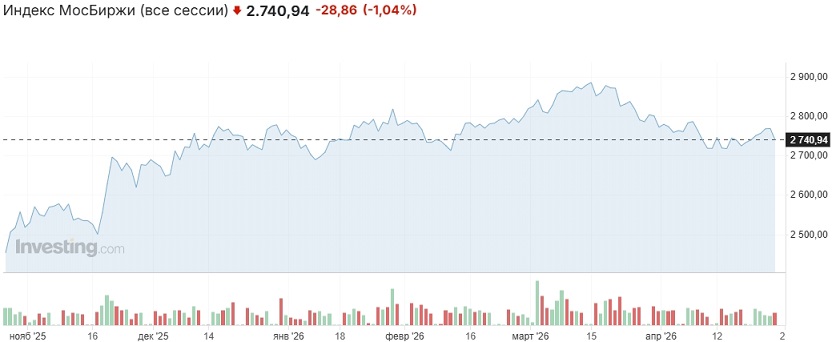 Попытки российского рынка в пятницу продолжить рост были пресечены. После достижения района 2778 пунктов индекс Мосбиржи развернулся, спикировал вниз и опускался в район 2730 пунктов, откуда немного отскочил. Основная сессия была закрыта на отметке 2733 пункта (-1,39% к закрытию основной сессии четверга), вечёрка — на отметке 2740,94 пункта (-1,04% к закрытию вечёрки четверга).